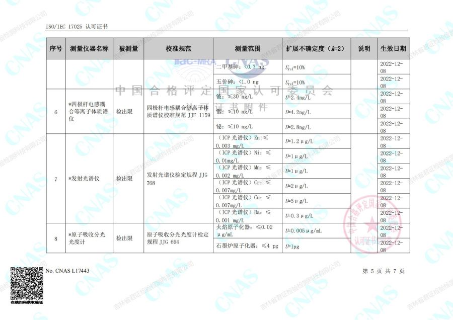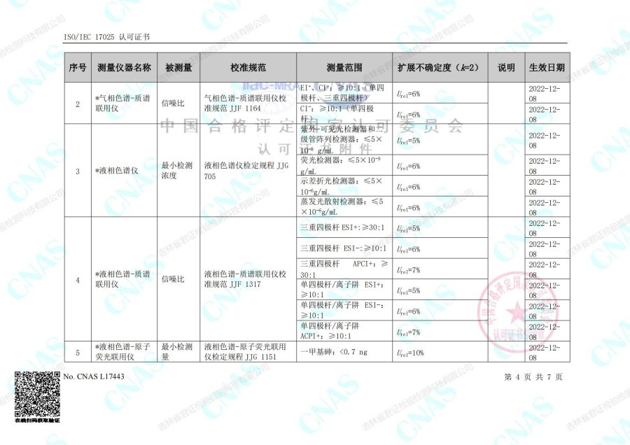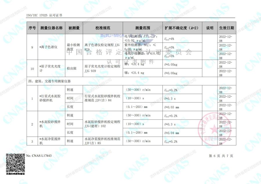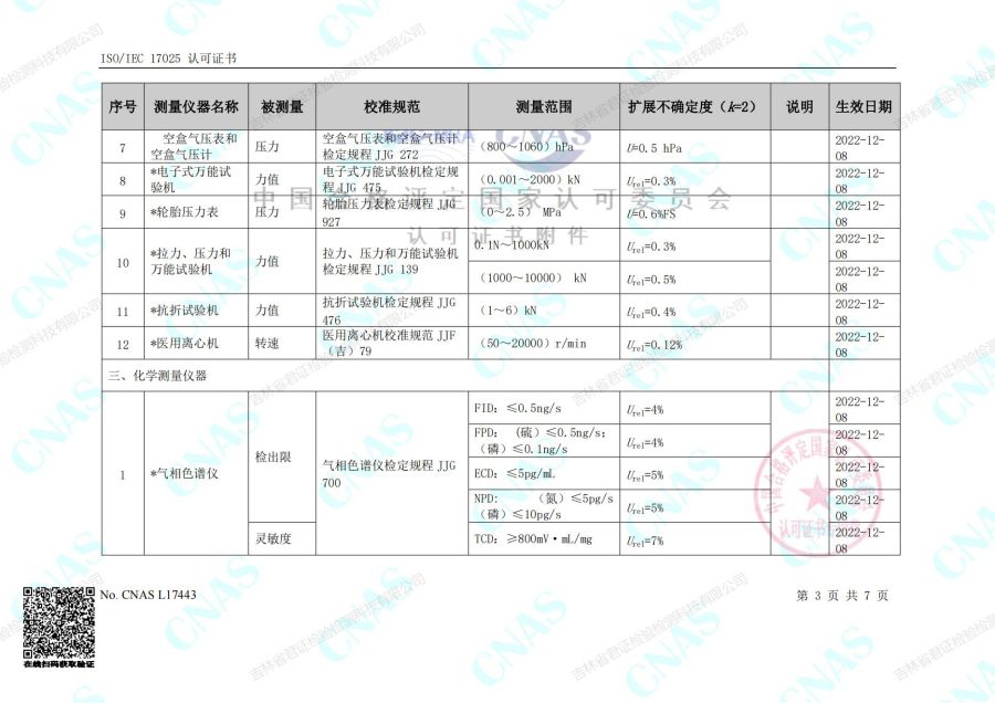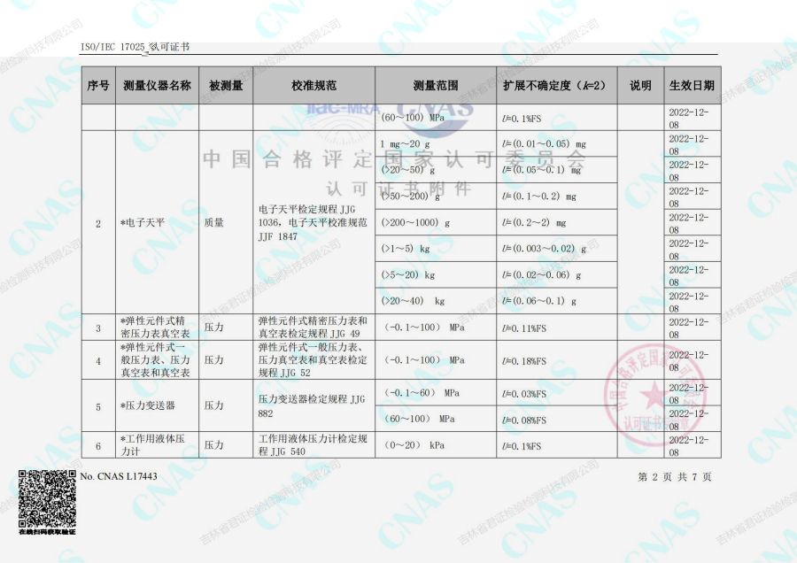 认可的校准和测量能力范围